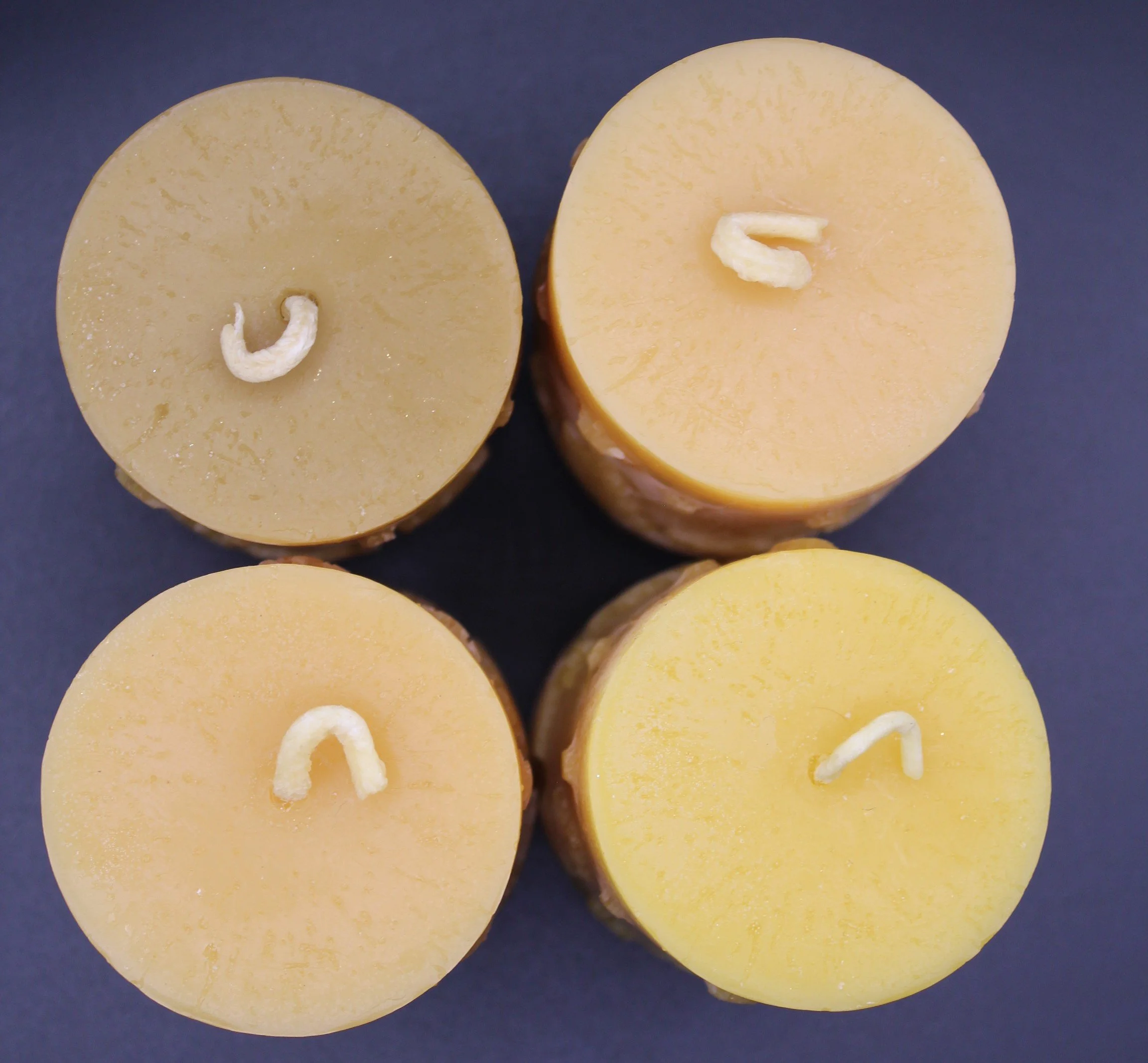 Beeswax is naturally white before it mixes with pollen and propolis in the hive, giving it the golden color seen in typical beeswax candles. Our Pearl beeswax is made by filtering out these elements, and like golden beeswax, it has natural variations.